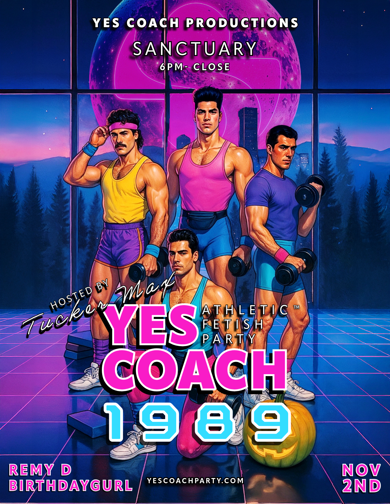 Step into the locker room of your dreams where sweat, spandex, and synth collide. YES COACH: 1989 brings you a full-throttle throwback to the golden age of men’s fitness culture. Think VHS workout tapes, Miami Vice muscle fantasy, and gym bodies glowing under neon lights.